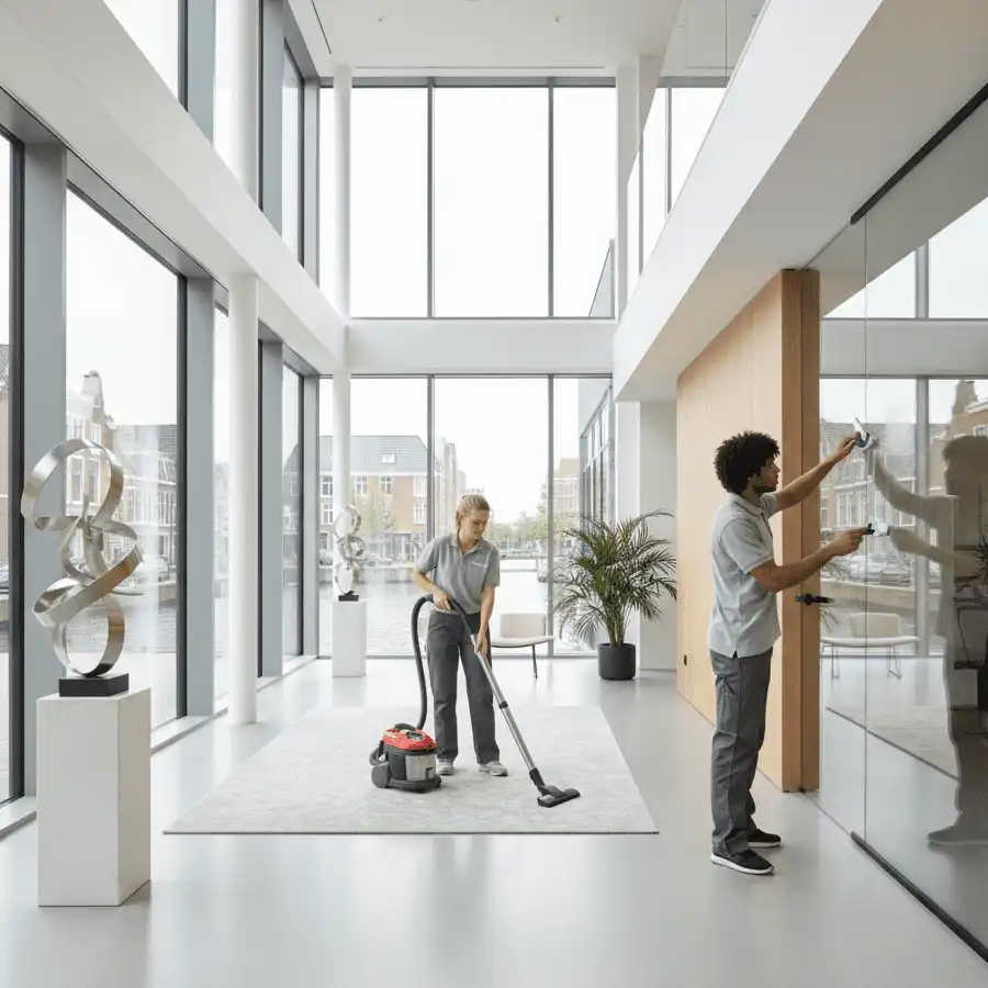 Schoonmaak van kantoren en bedrijfspanden in barendrecht en omgeving. Van basis onderhoud tot vaste teams, met dag- of avondschoonmaak. Inclusief sanitair, pantry, vloeren, werkplekken en algemene ruimtes.